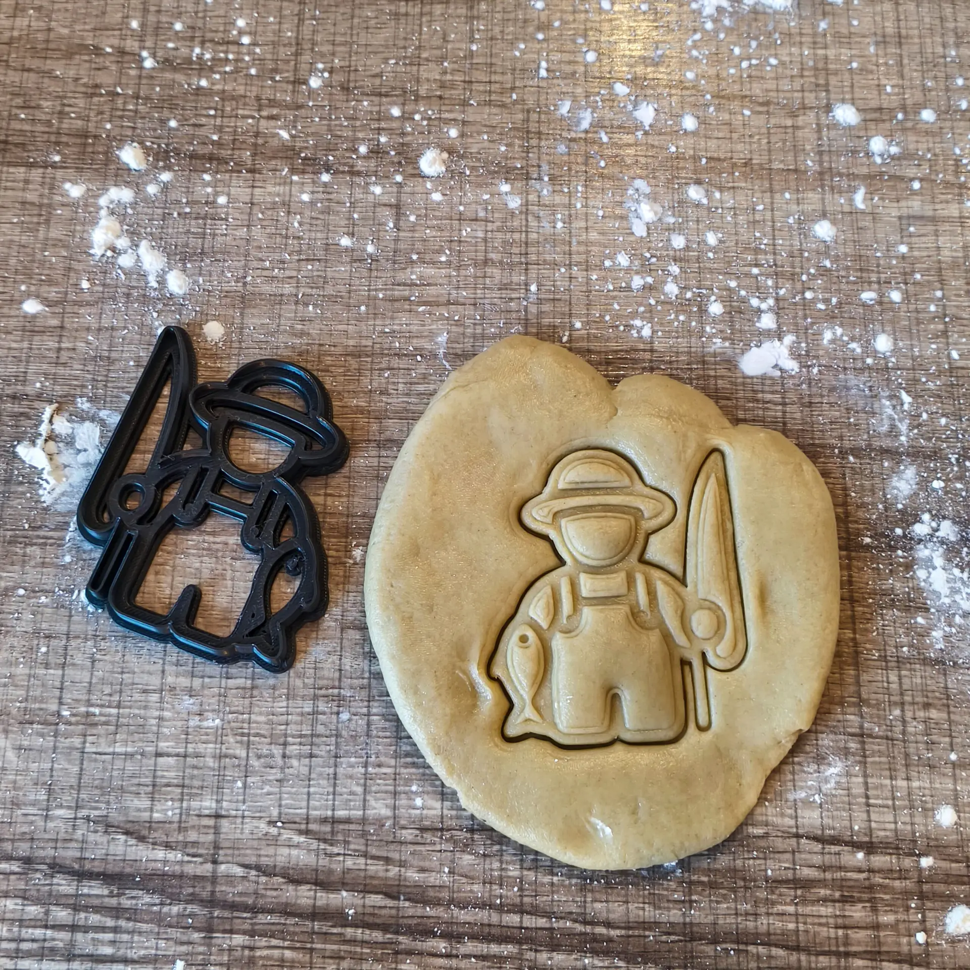 Ausstecher in Angler-Form mit Angelrute – ideal für Kekse, Fondant, Salzteig & Bastelprojekte. Perfekt für Vatertag, Angelpartys und Hobby-Angler.